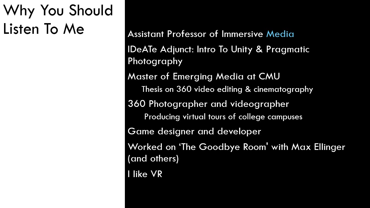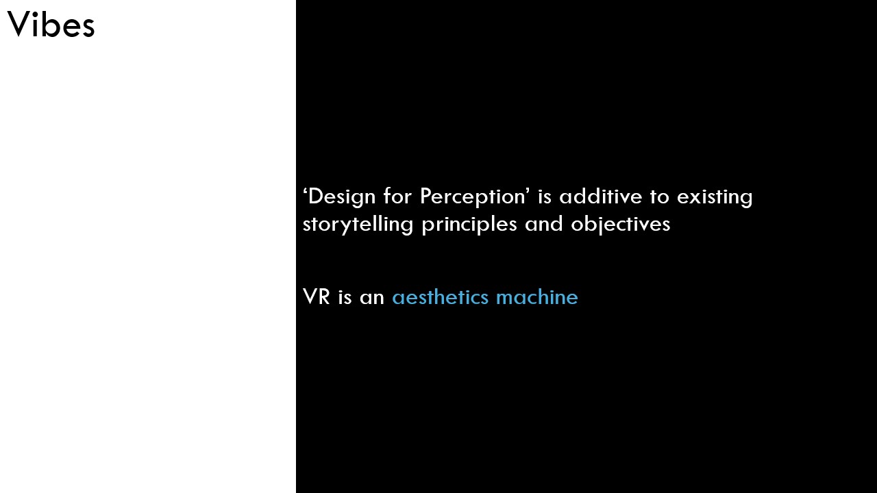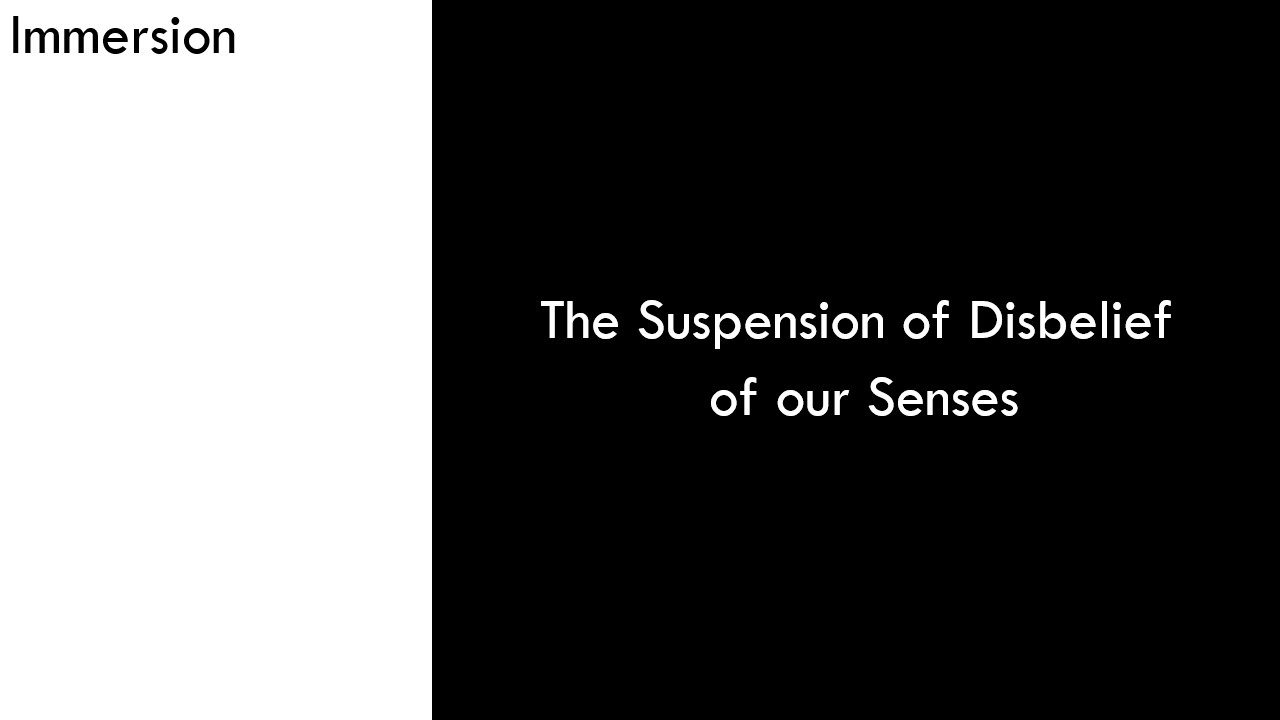 But, because immersive media like VR is about our perception and senses, it’s the suspension of disbelief - just like you know and love - of our senses.