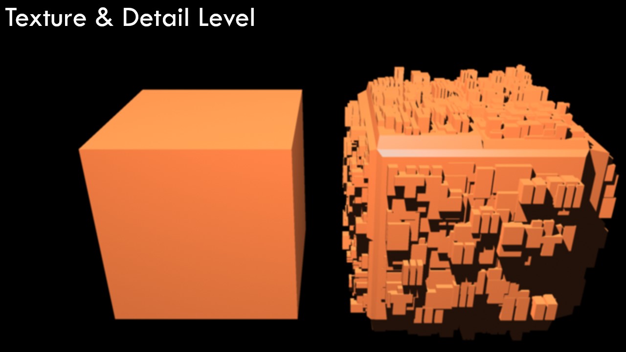 Greebles! Texture but little 3D bits. Greebles! Big things have small things on them.