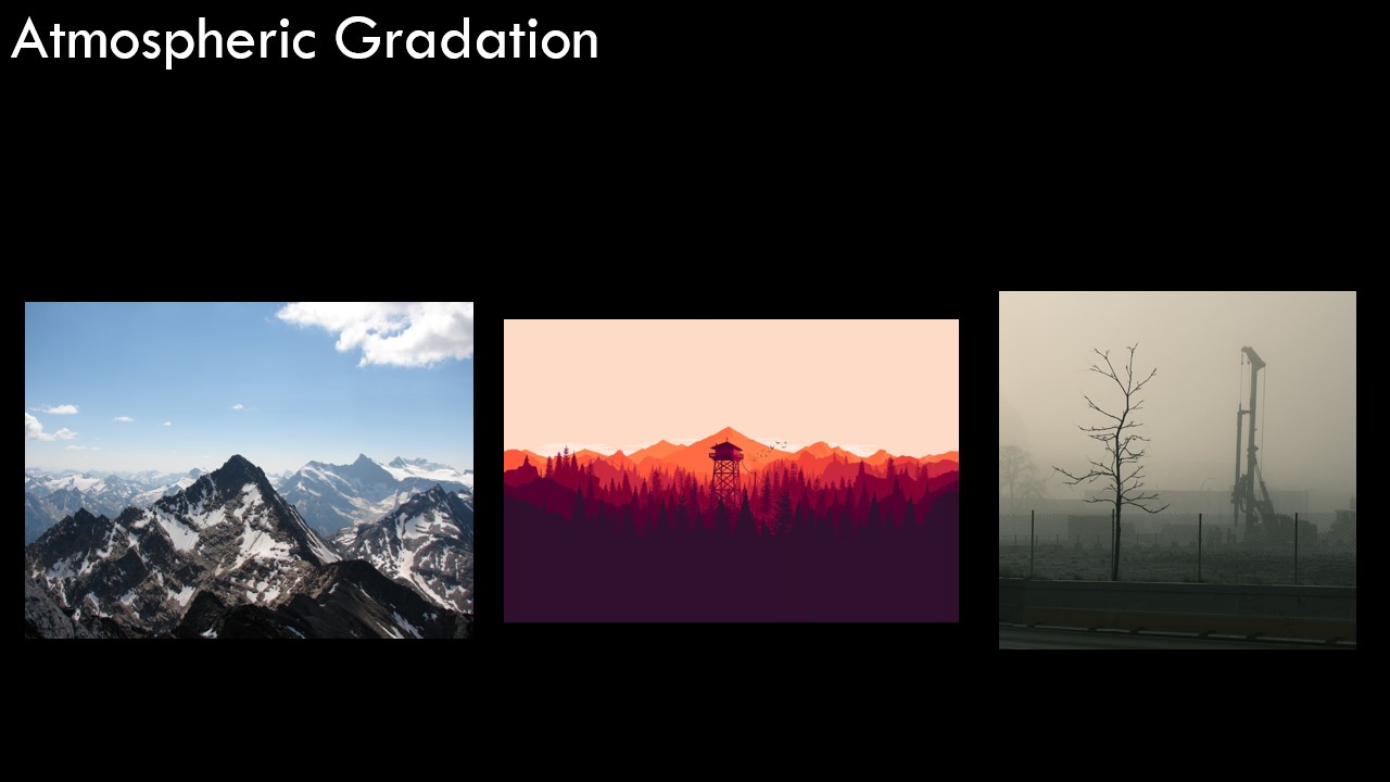 Atomspheric gradation is great because it works at any distance. We don’t need fog in our scene, we can just lower the contrast of things that are far away.