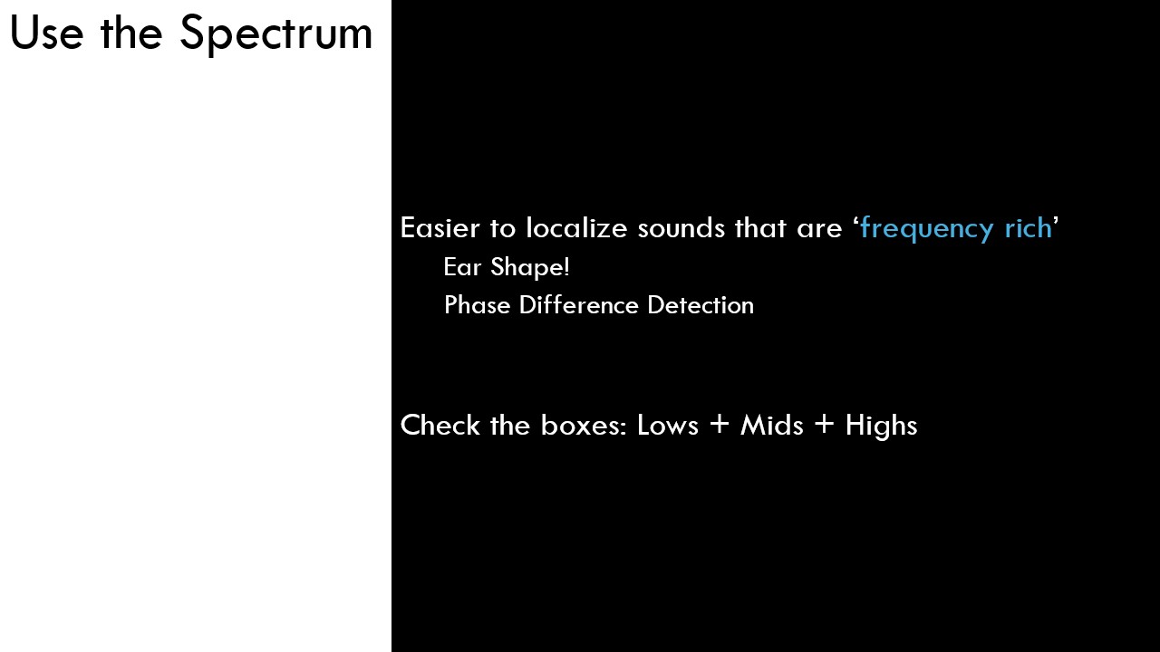 One of the cues we skipped is about how the ear shape affects different frequences differently from different directions.
