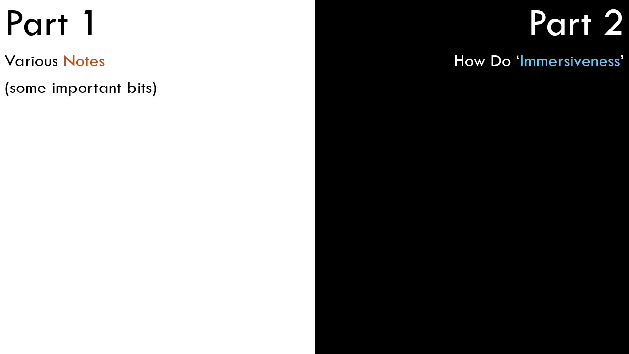 Normally we break the term down: depth of immersion, fidelity of immersion, ease of immersion, and so on; but we’re a room of storytellers!